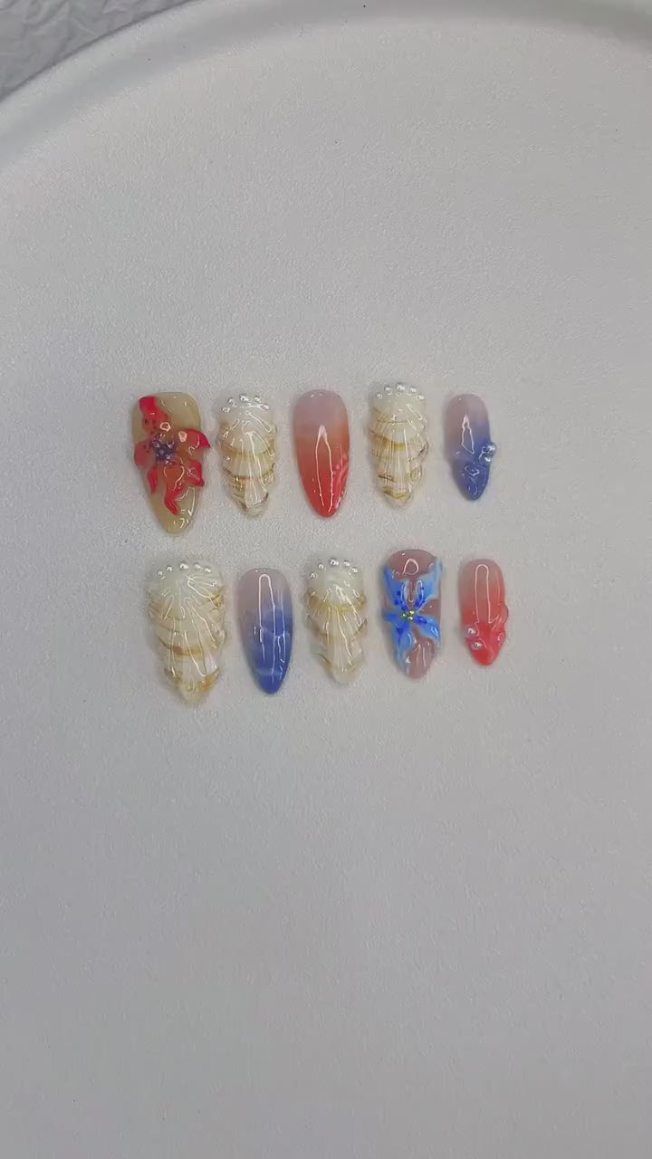 Sunlit Coastline Press On Nails, Custom Design Nails Art, 3D Nails, Fake Nails, Flower Nails, Shell Nails, Pearl Nails, Gift For Her